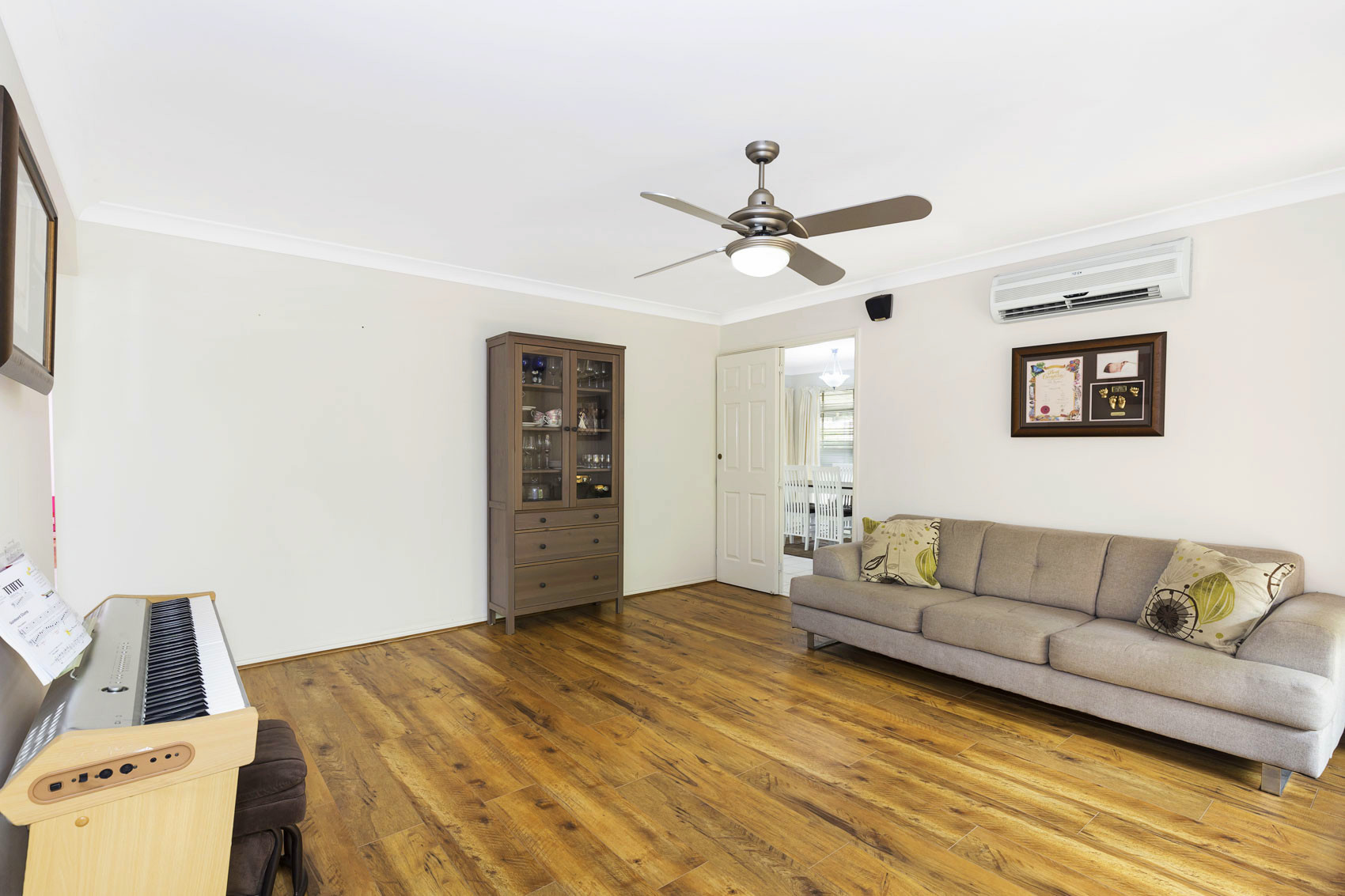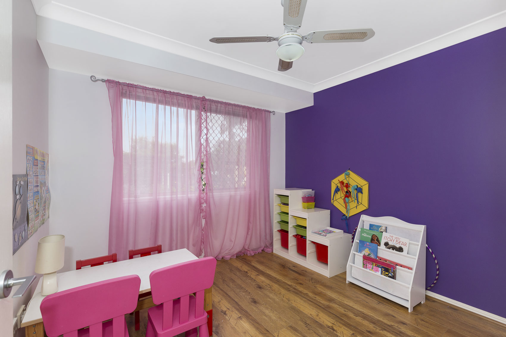 • 4 bedrooms with built in robes and ceiling fans. The master bedroom is air conditioned, has a wall of robes and an ensuite with a shower and toilet