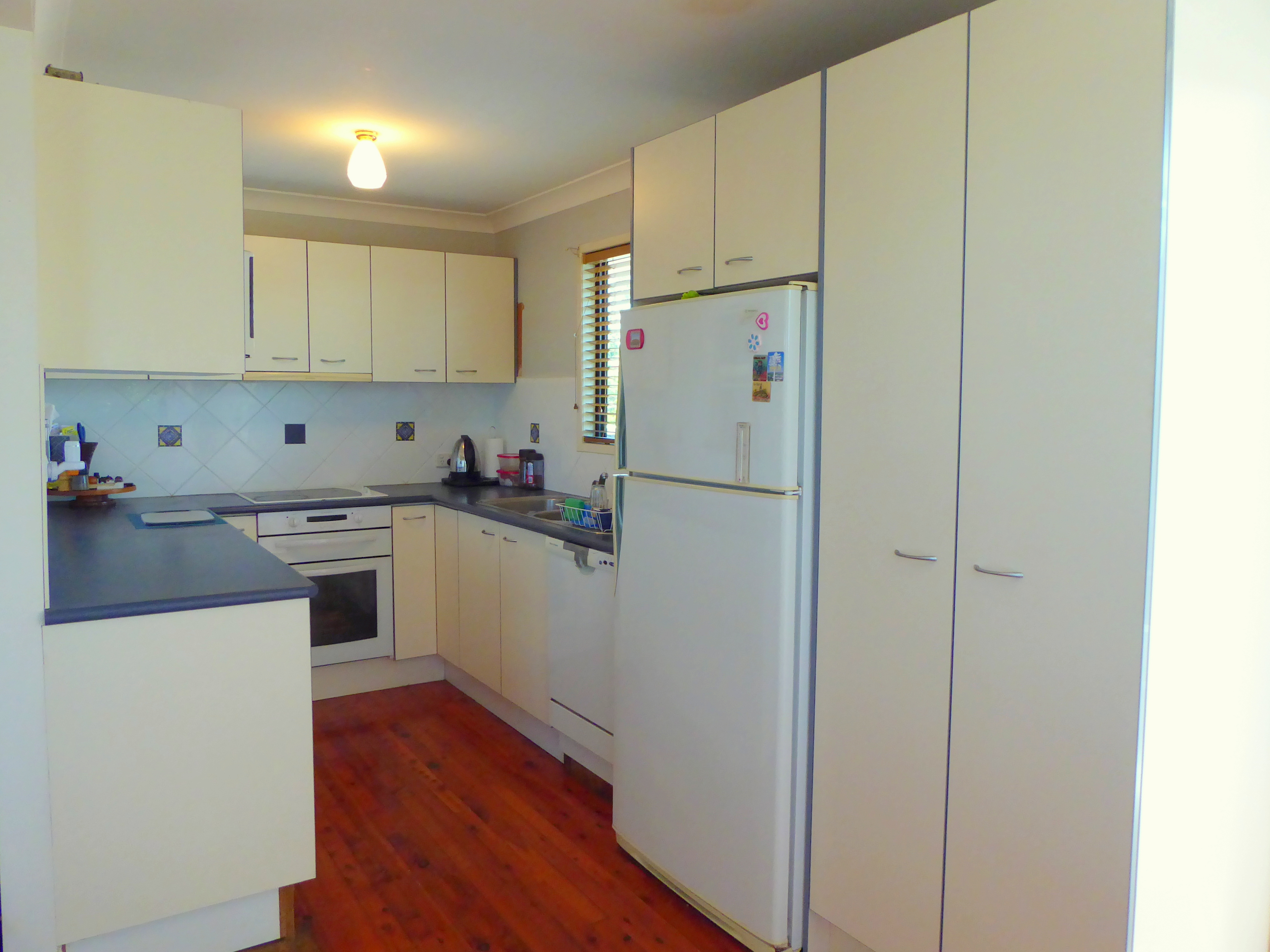 • Kitchen with ceramic cooktop, rangehood, pantry and  dishwasher