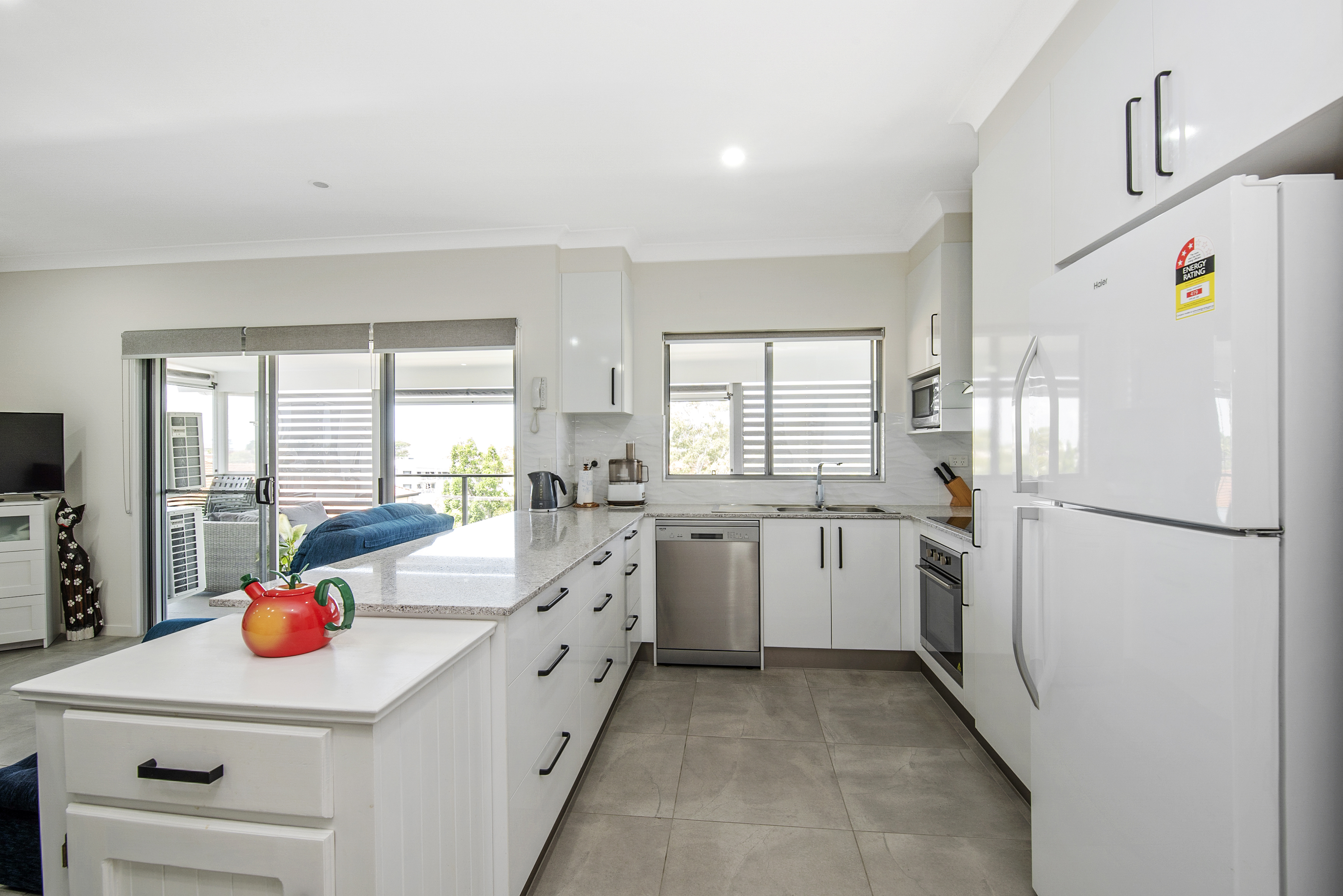 * Well designed kitchen with stone benches, dishwasher, stainless appliances, rangehood and pantry