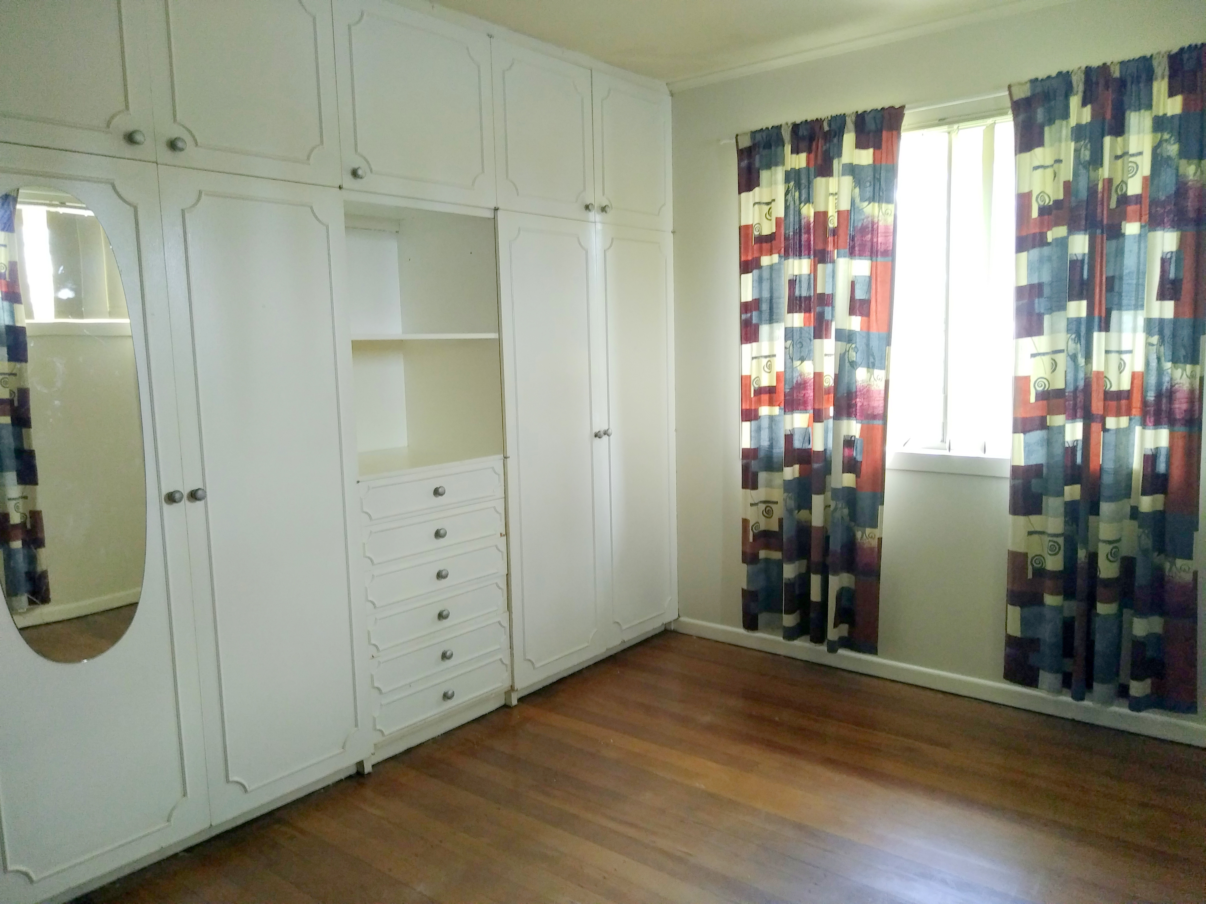 • Master bedroom with ceiling fan and built-in wardrobe.