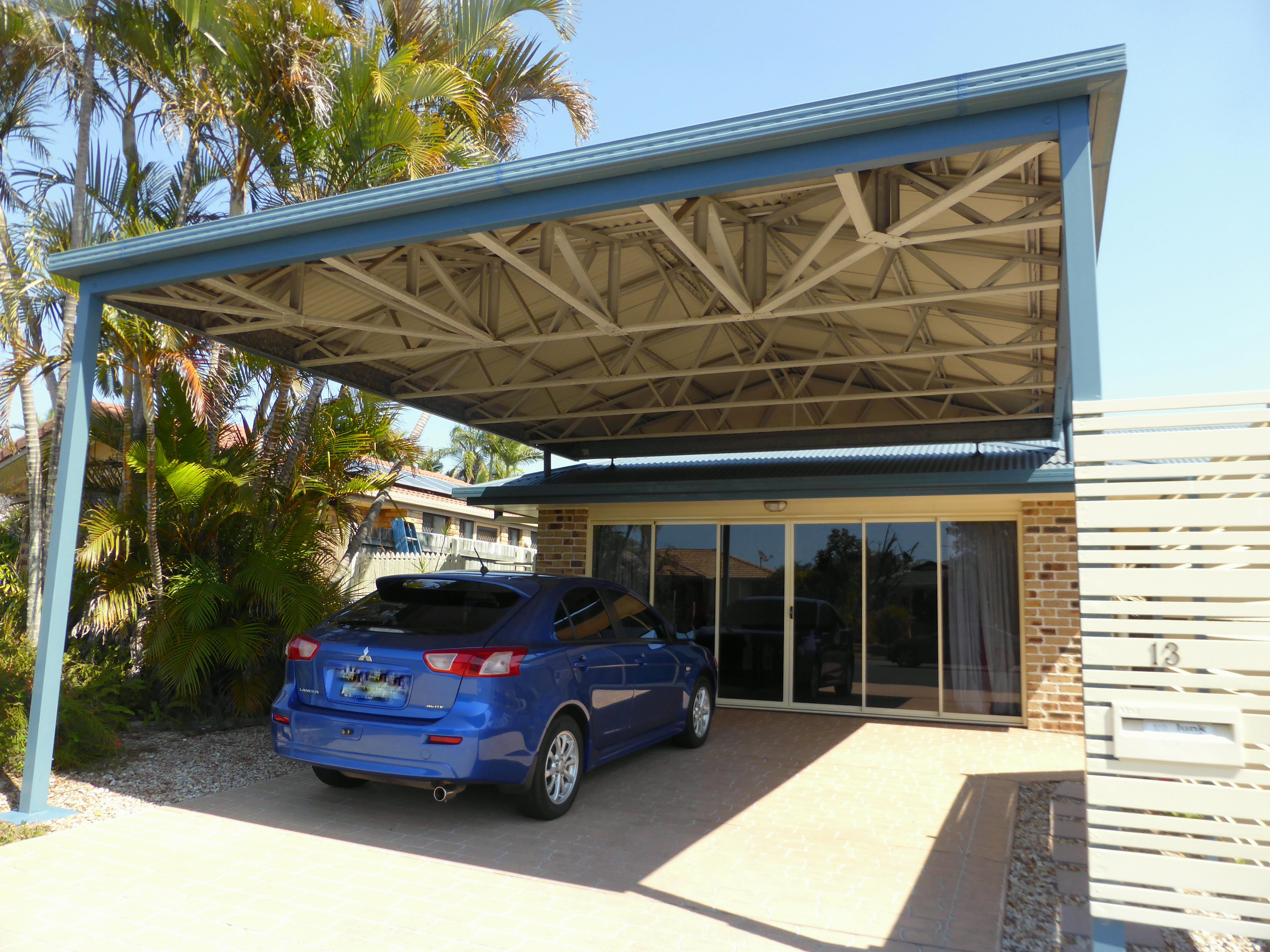 * Double carport with high top roof to suit caravan or boat