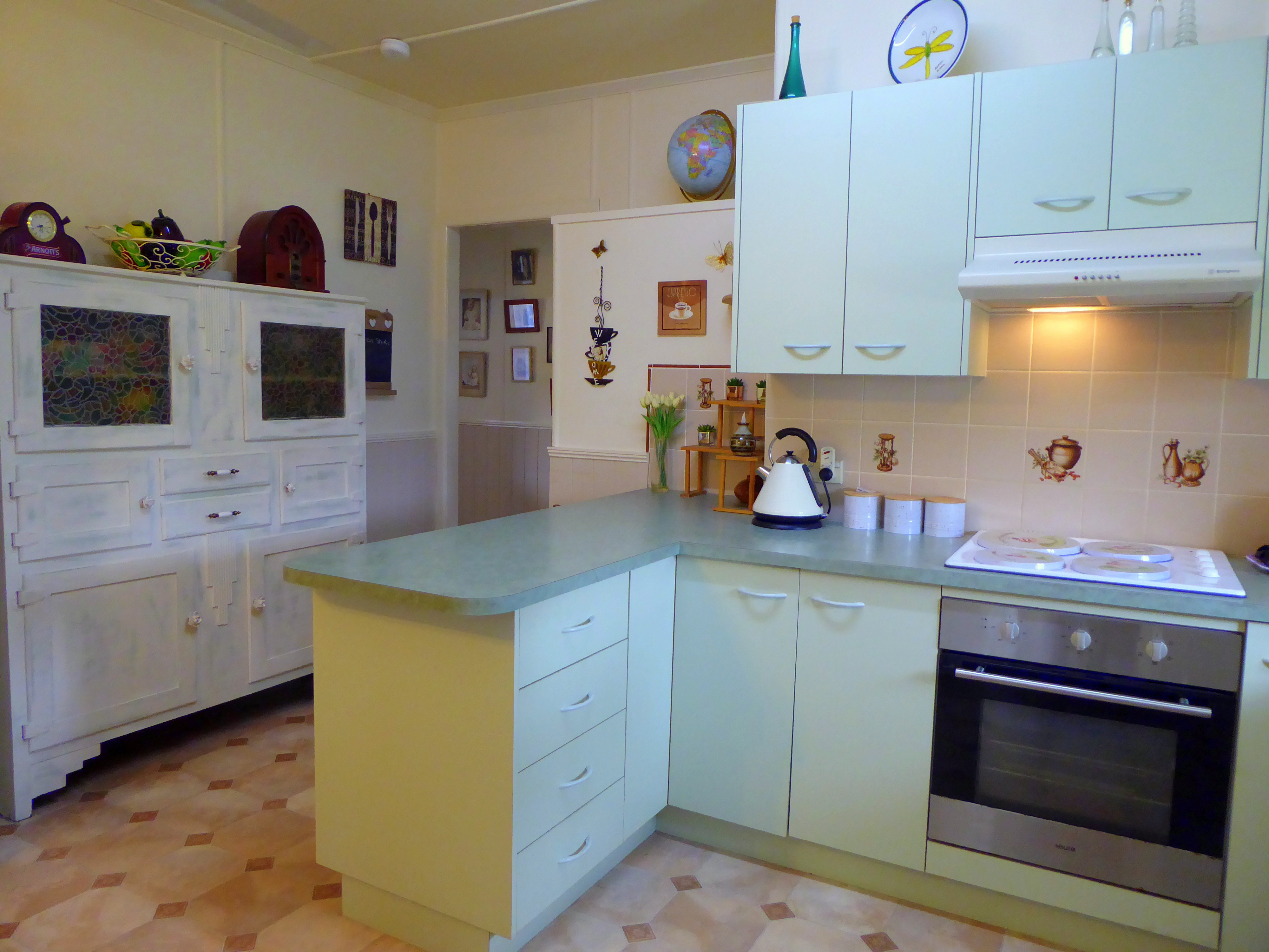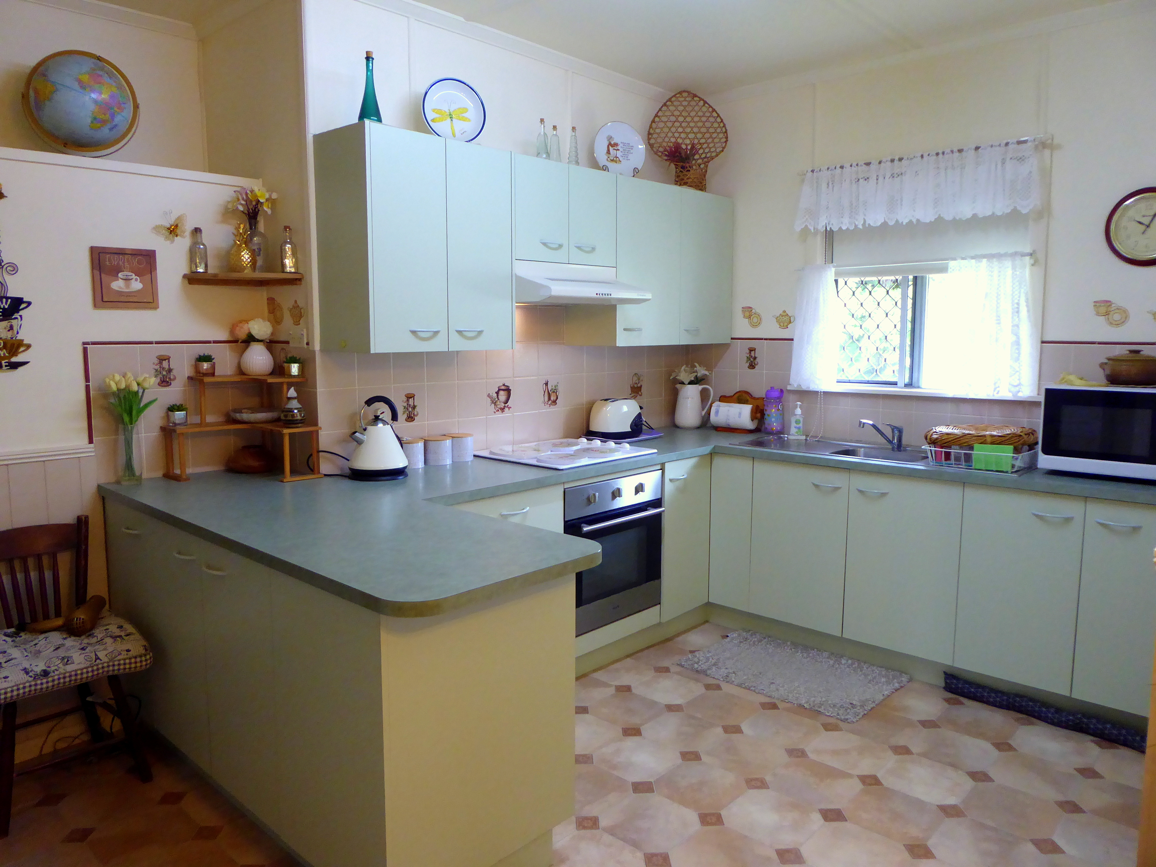 * Modern kitchen with electric cooking, rangehood and good storage space