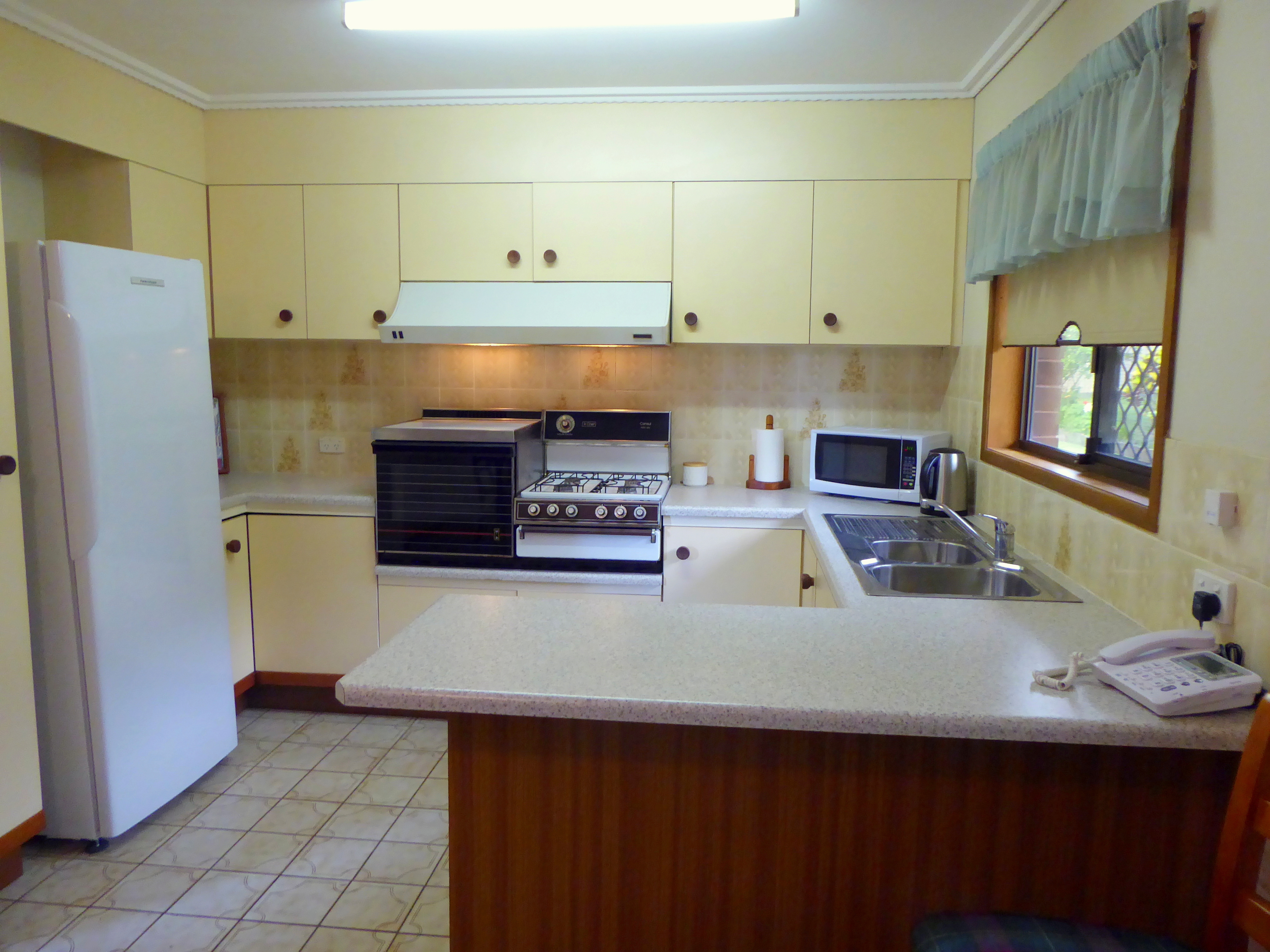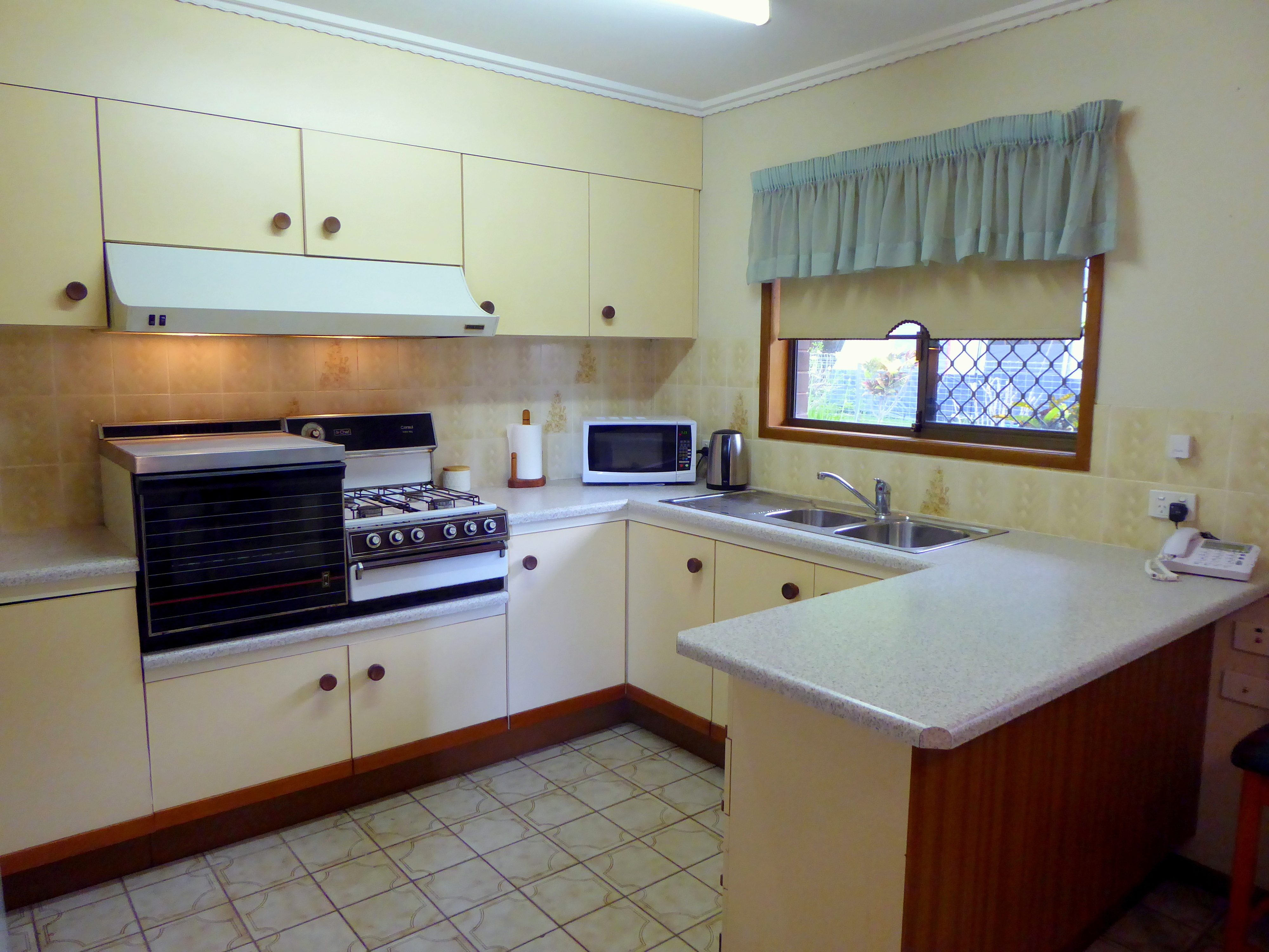 • Large kitchen with gas oven, hotplate, rangehood, double basin sink, pantry, decent storage and great bench space