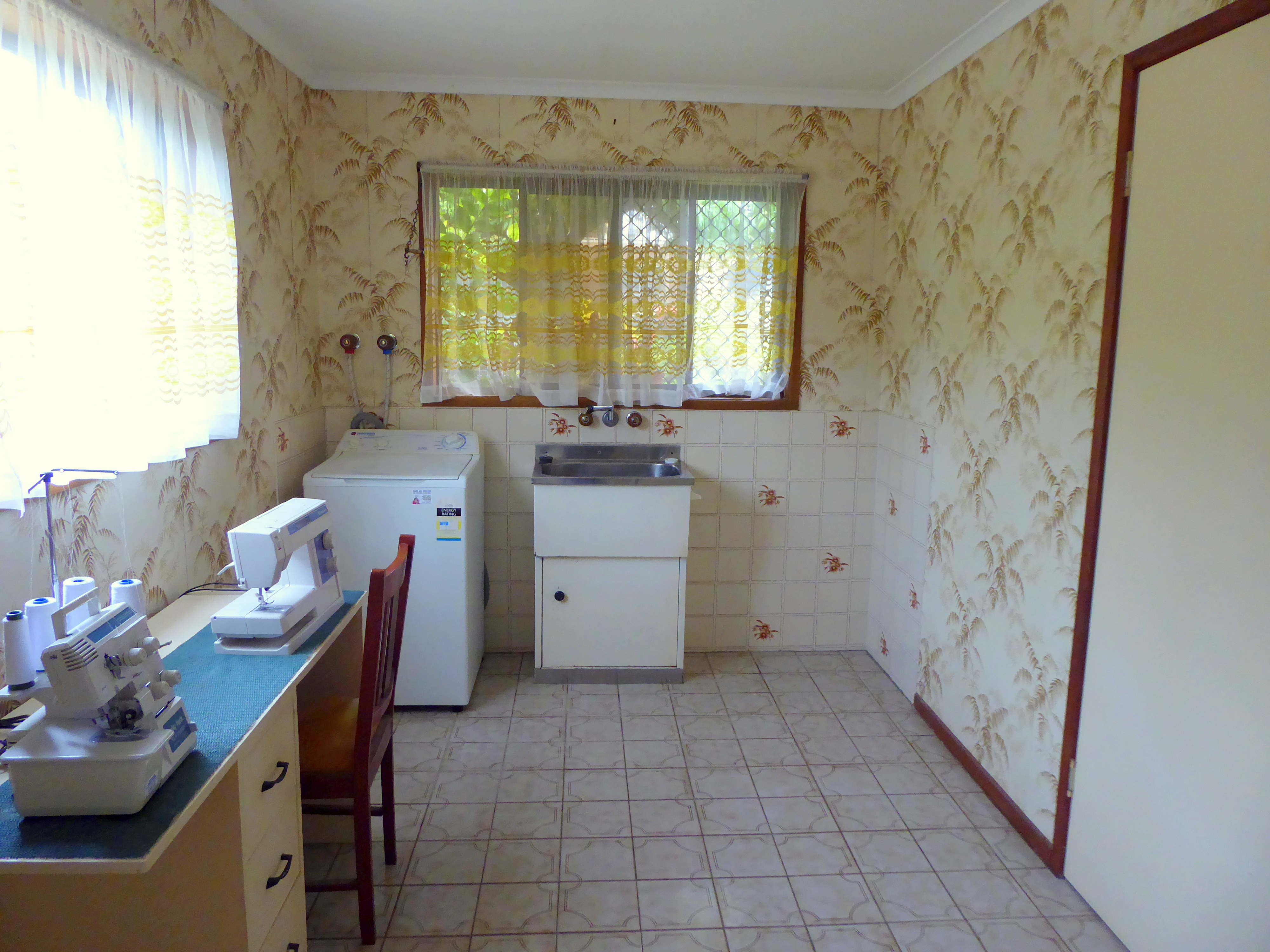 • Large laundry/sewing room