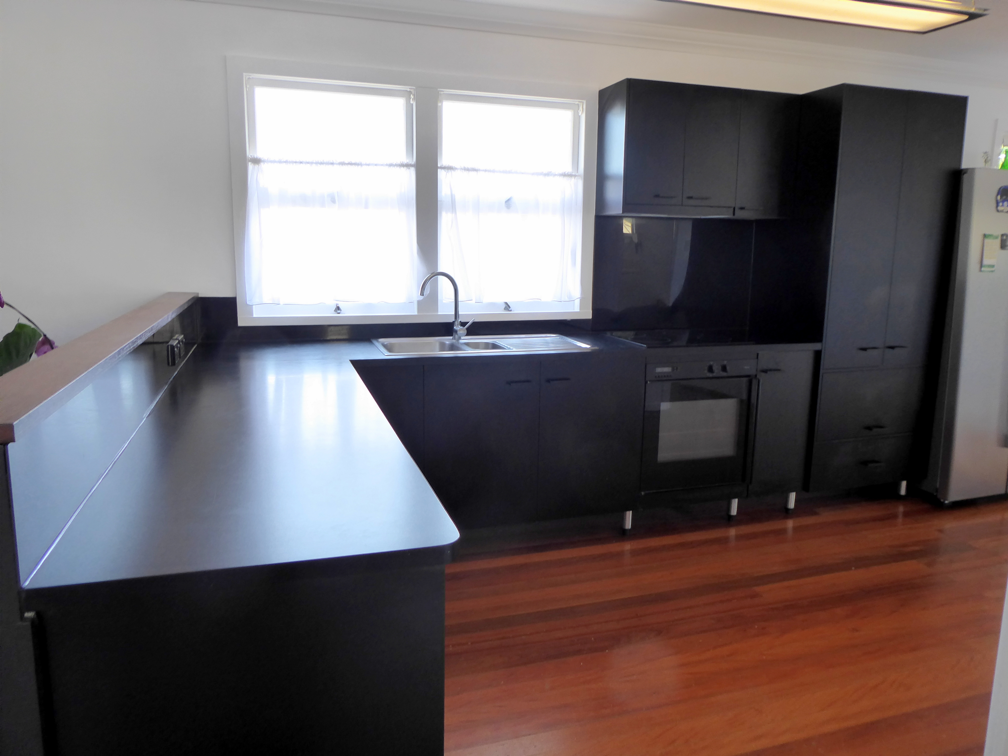 * Funky modern kitchen with heaps of storage, ceramic cooktop and pantry