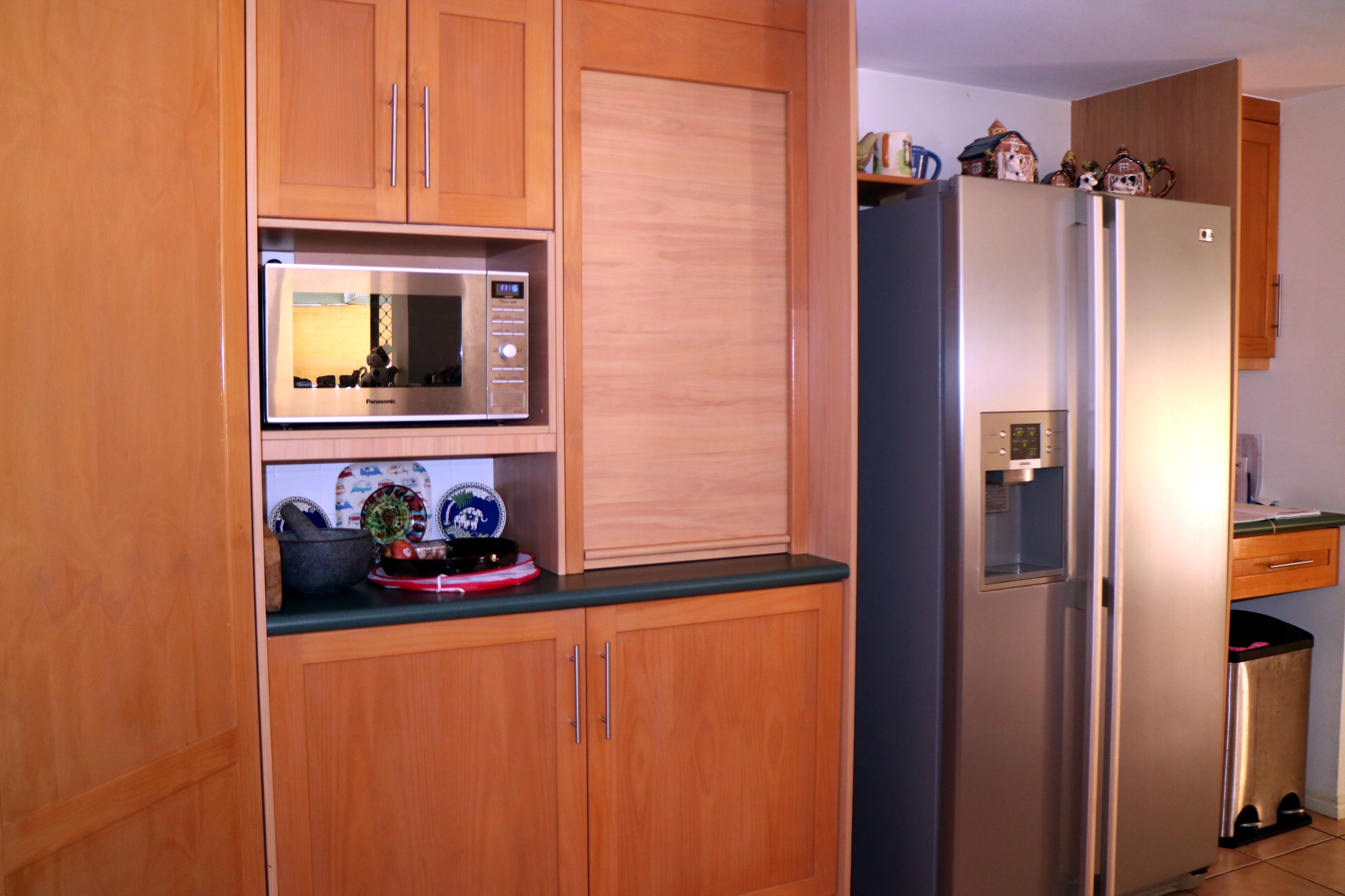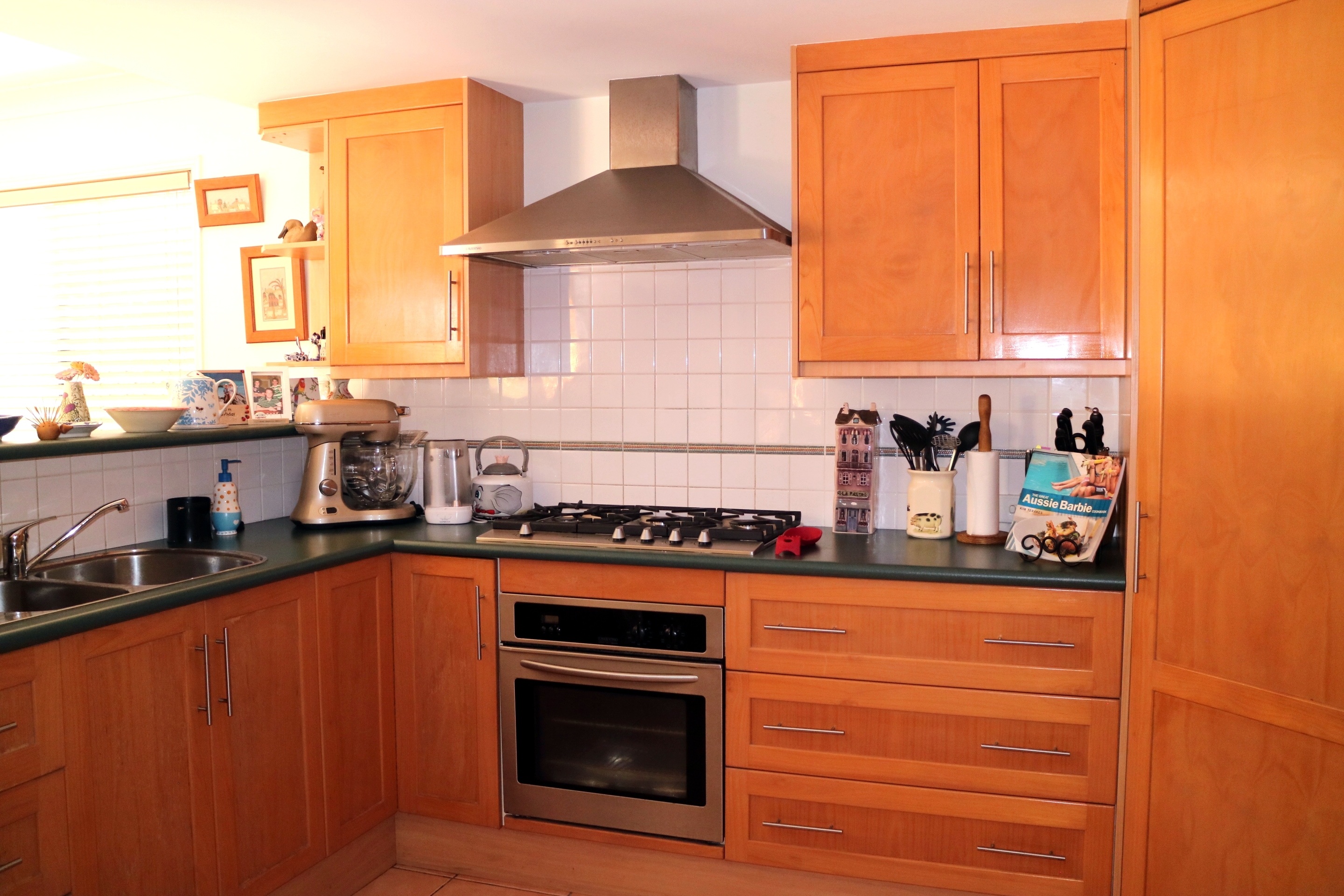 *   Huge family kitchen with timber cupboards, pantry, dishwasher and plenty of storage and bench space including breakky bar