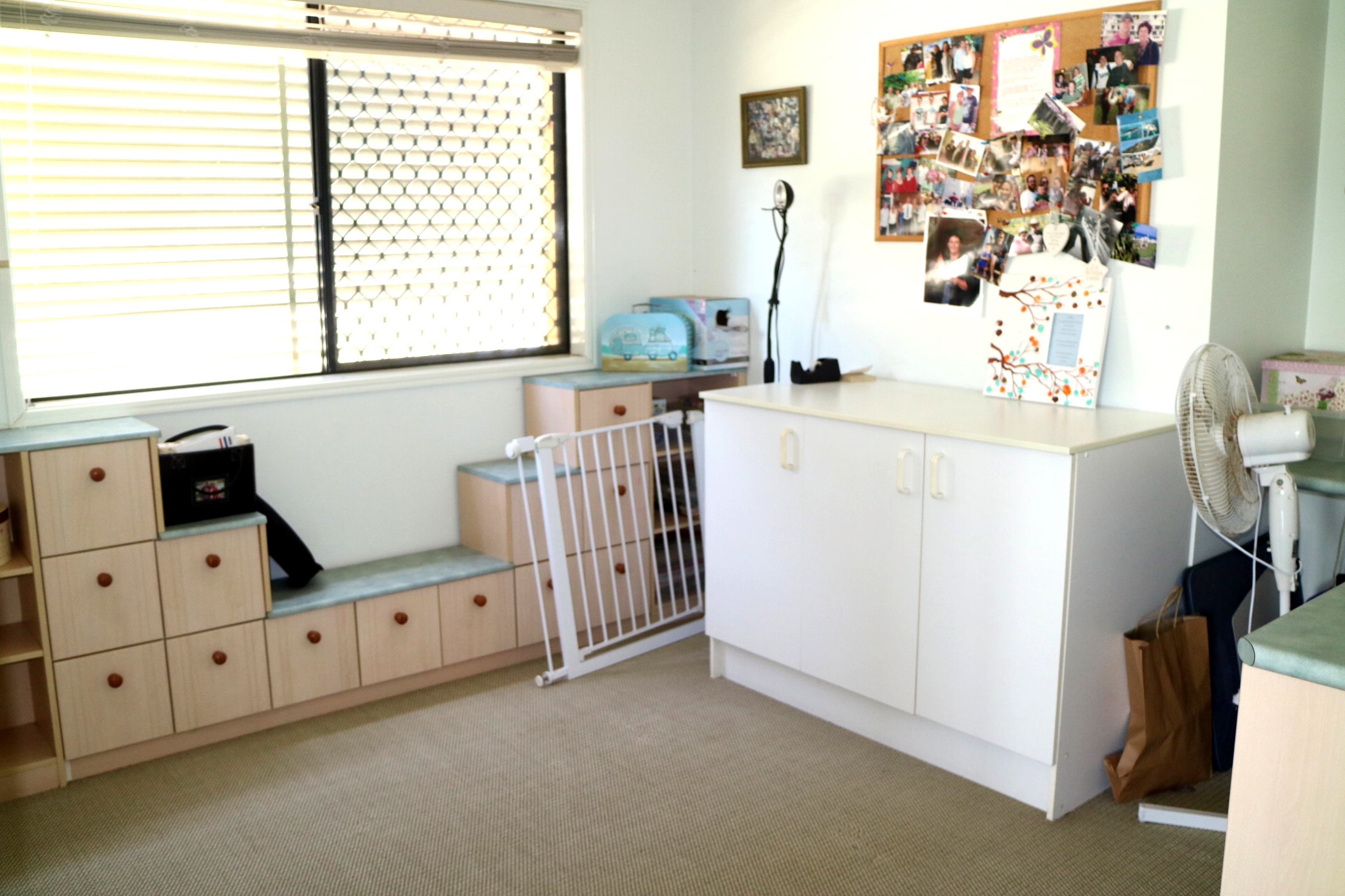 *   Fourth bedroom has overhead fan with space to build in robes