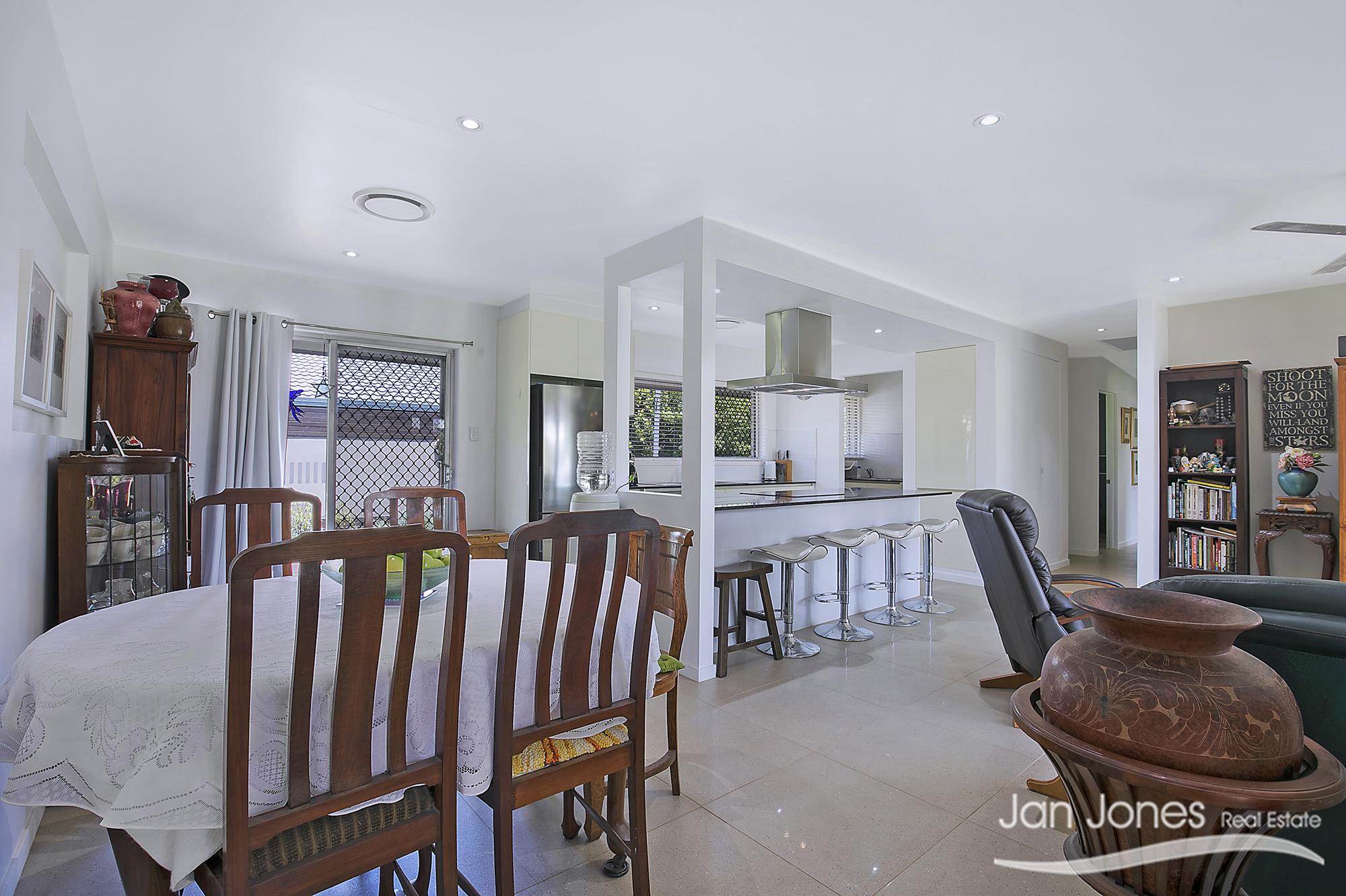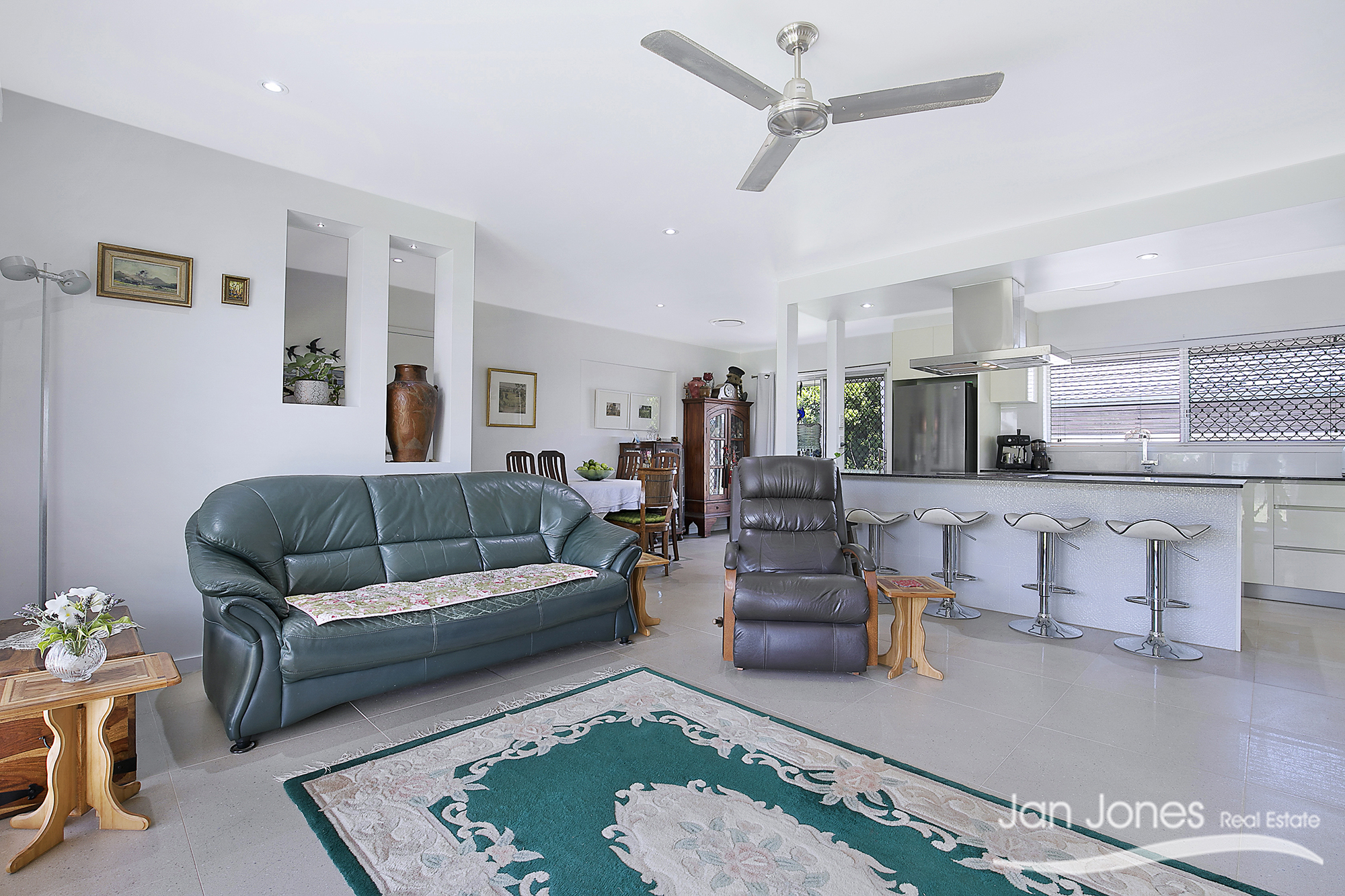 Open plan living and dining area overlooking the front yard with plenty of filtered light and beautiful sea breezes makes this a relaxing home to sit and watch the world go by.