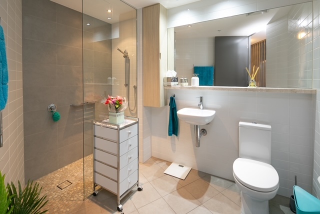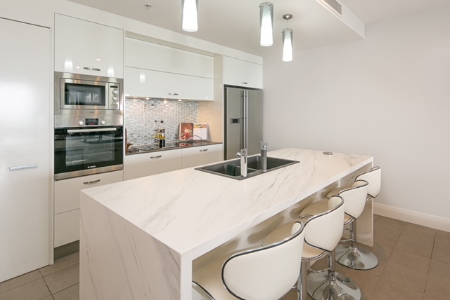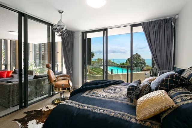 There are two large bedrooms with built in mirror robes and a study nook with a Murphy bed for that extra guest.  Both bedrooms enjoy access to the balcony and have good water views.