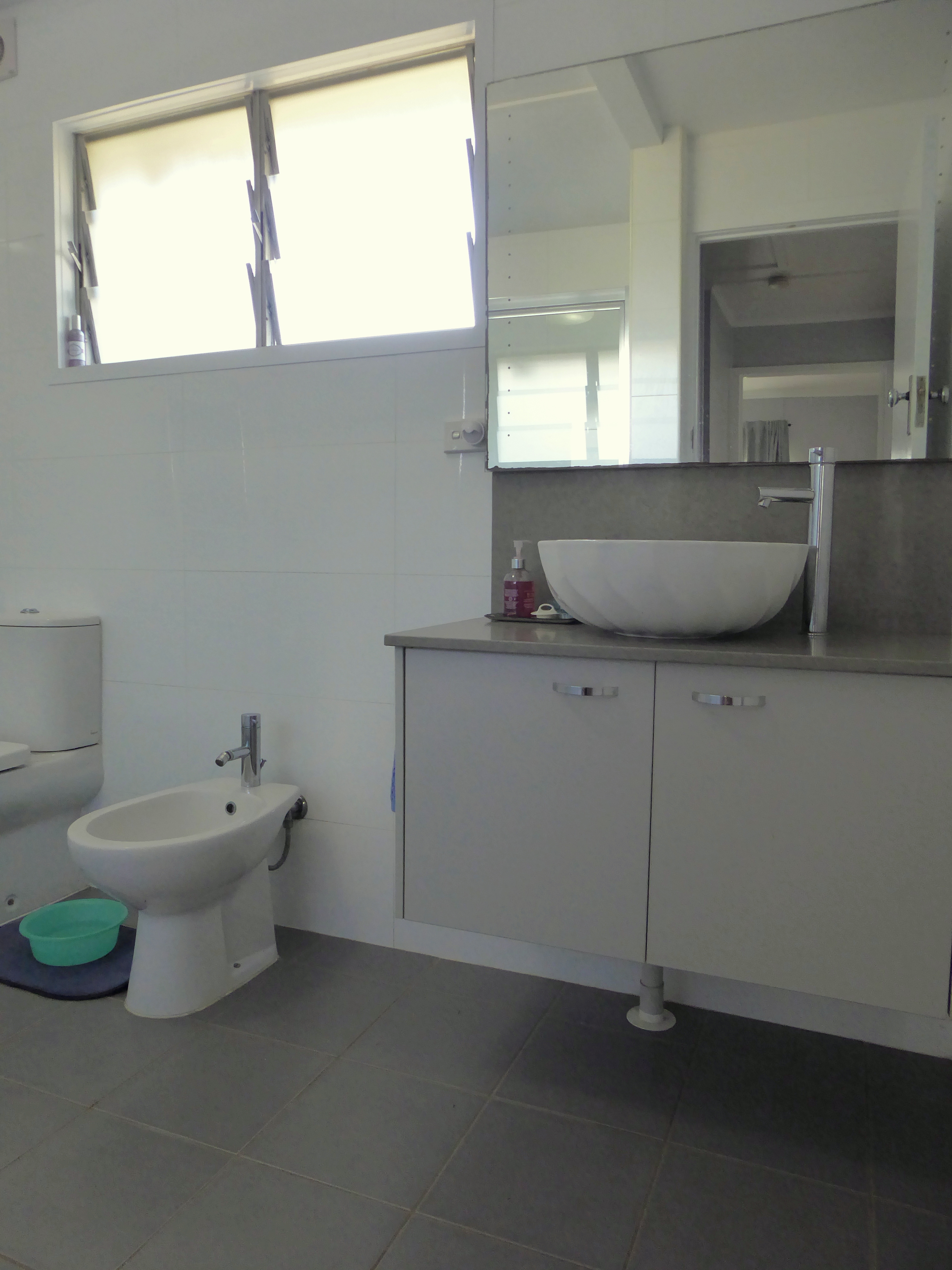 * Renovated fully tiled bathroom with large shower, toilet, bidet and vanity.
