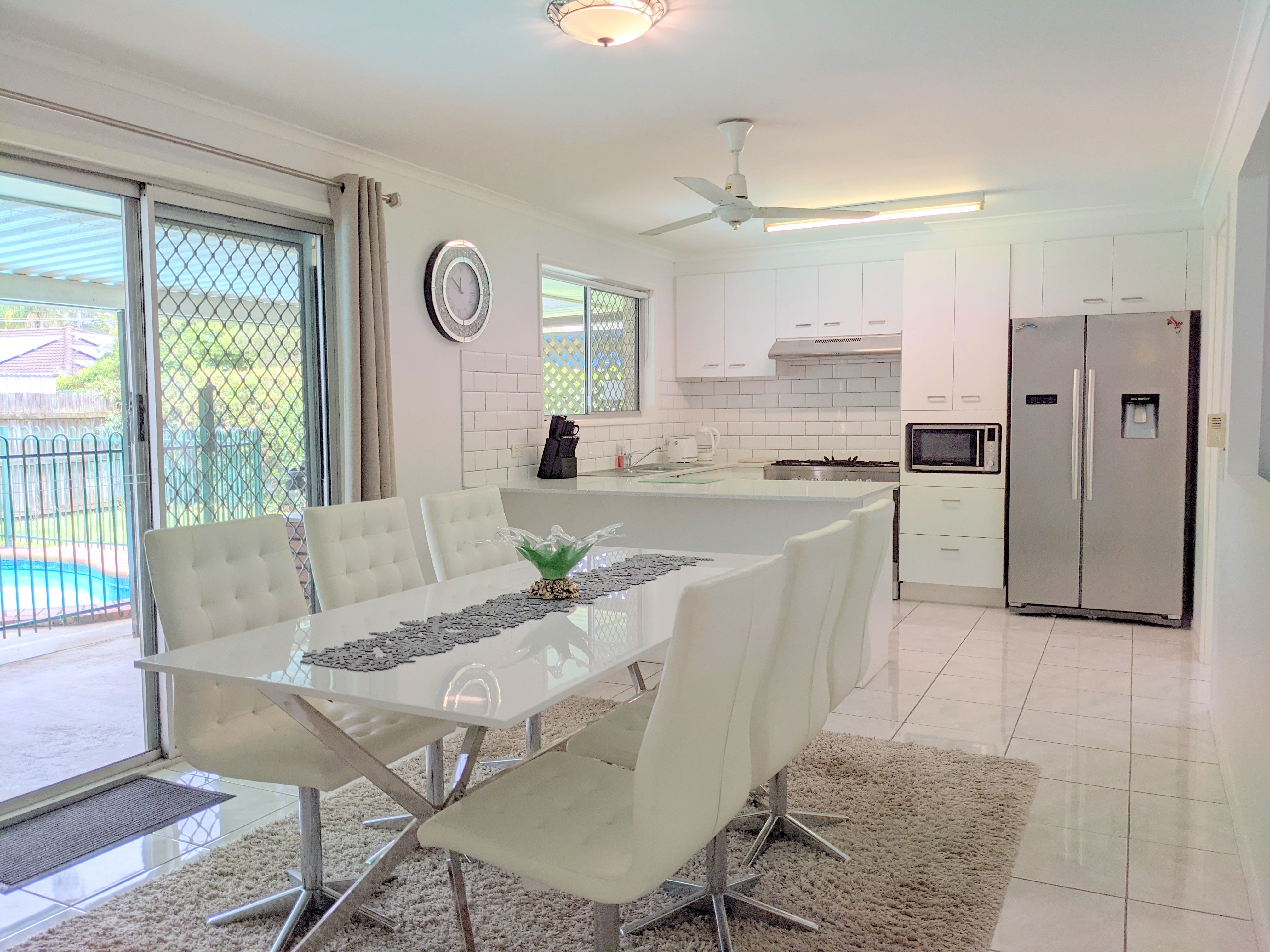 • Dining room has air conditioning which services the entire living space, ceiling fan and sliding door access to the rear