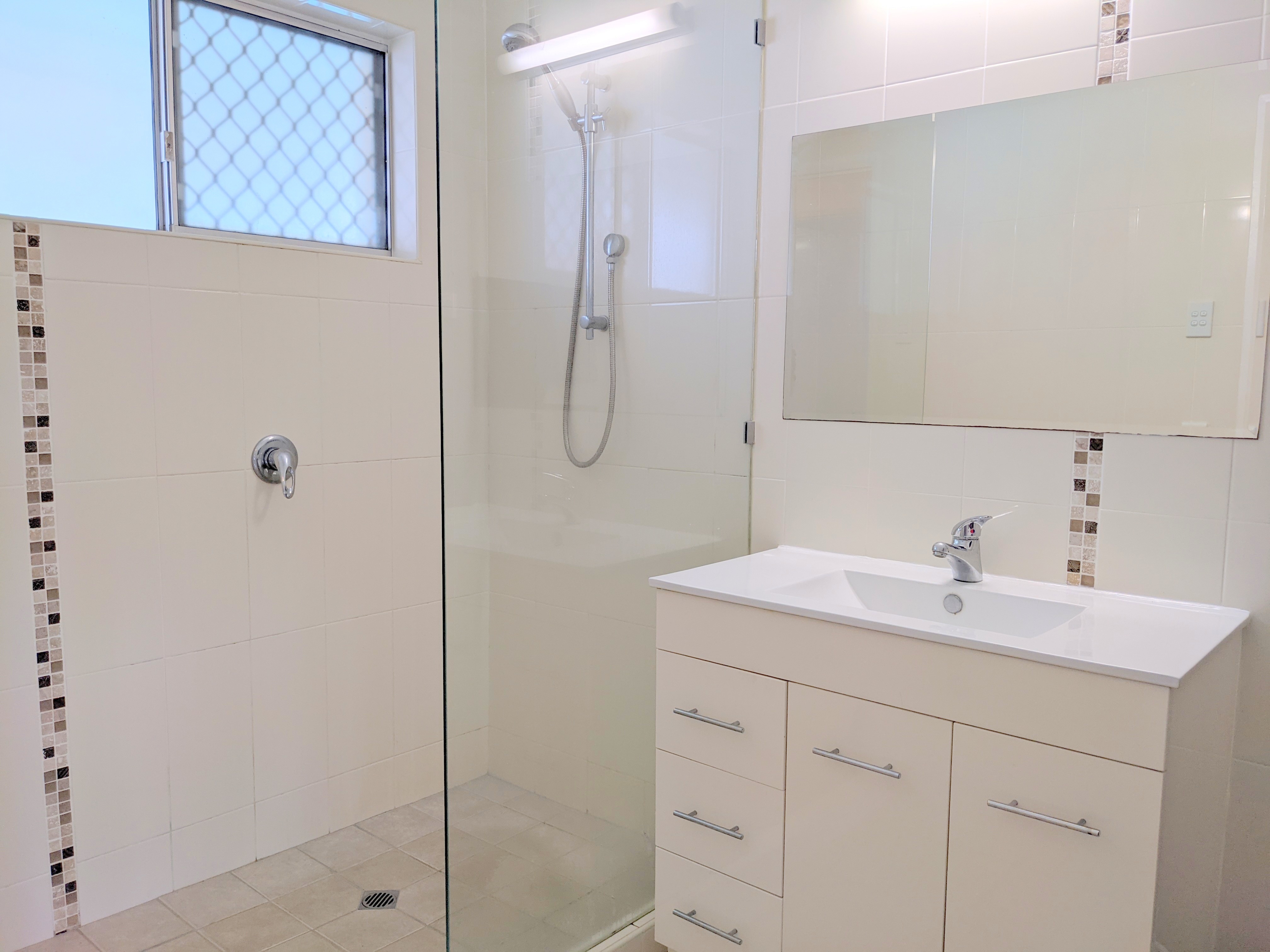 • Bathroom features shower, vanity and separate toilet