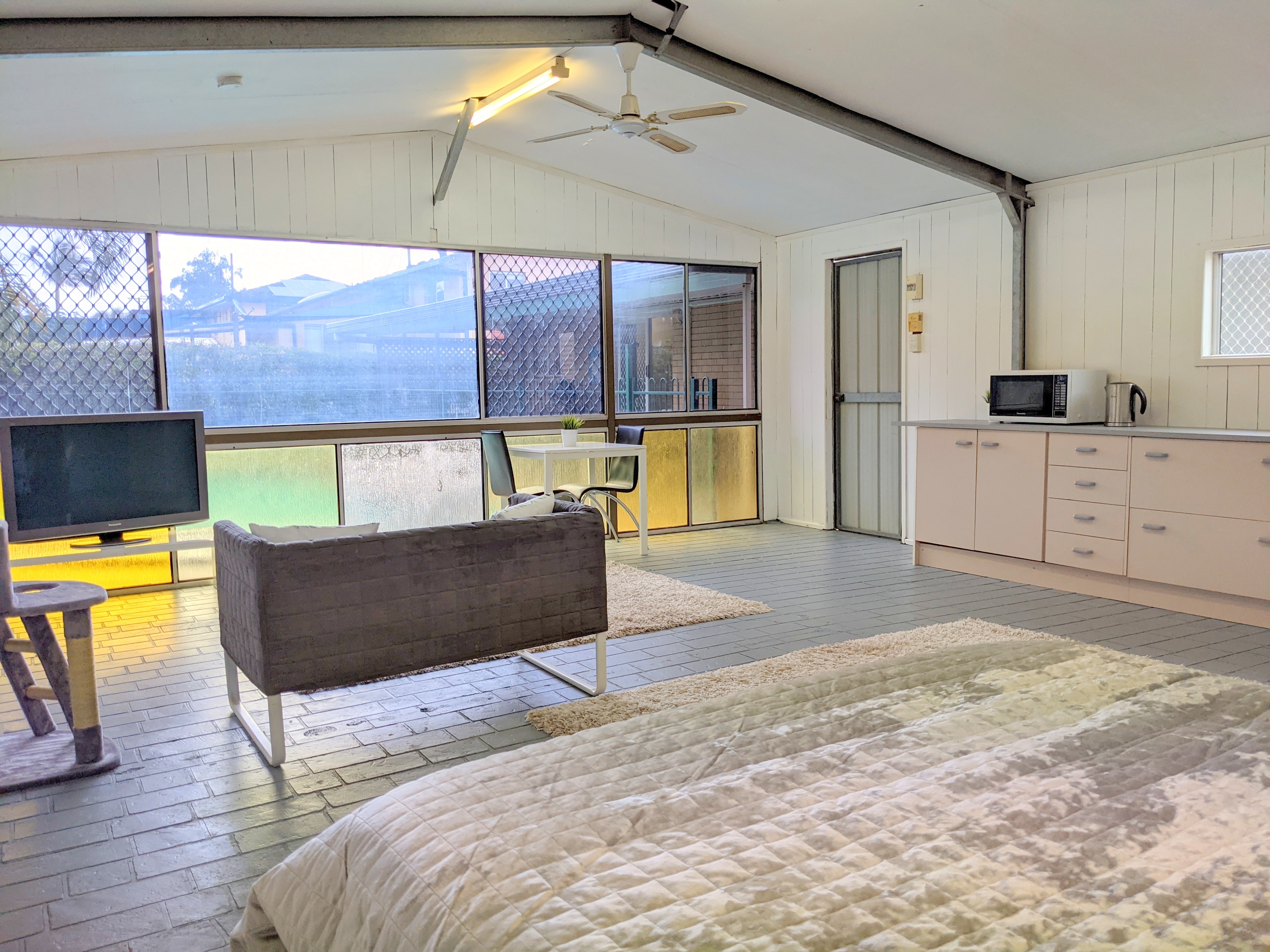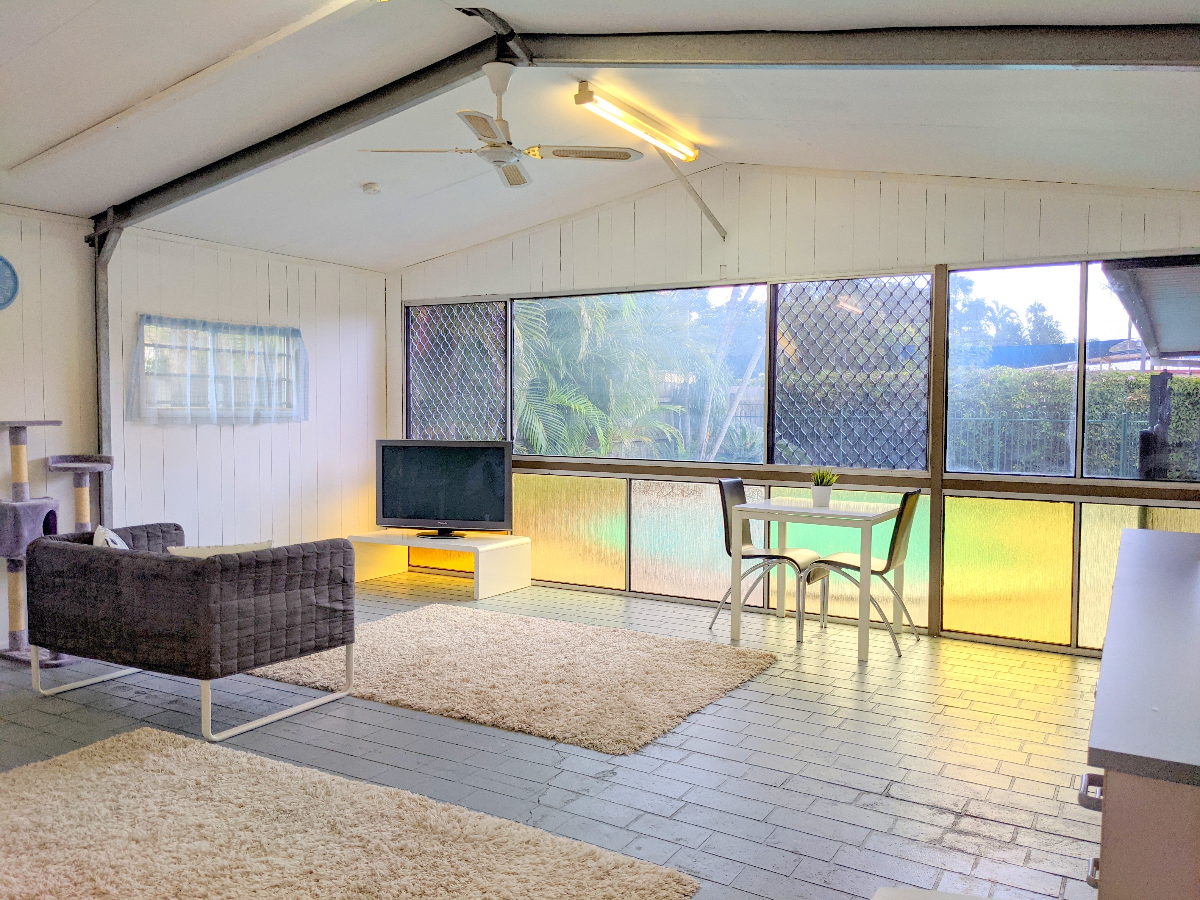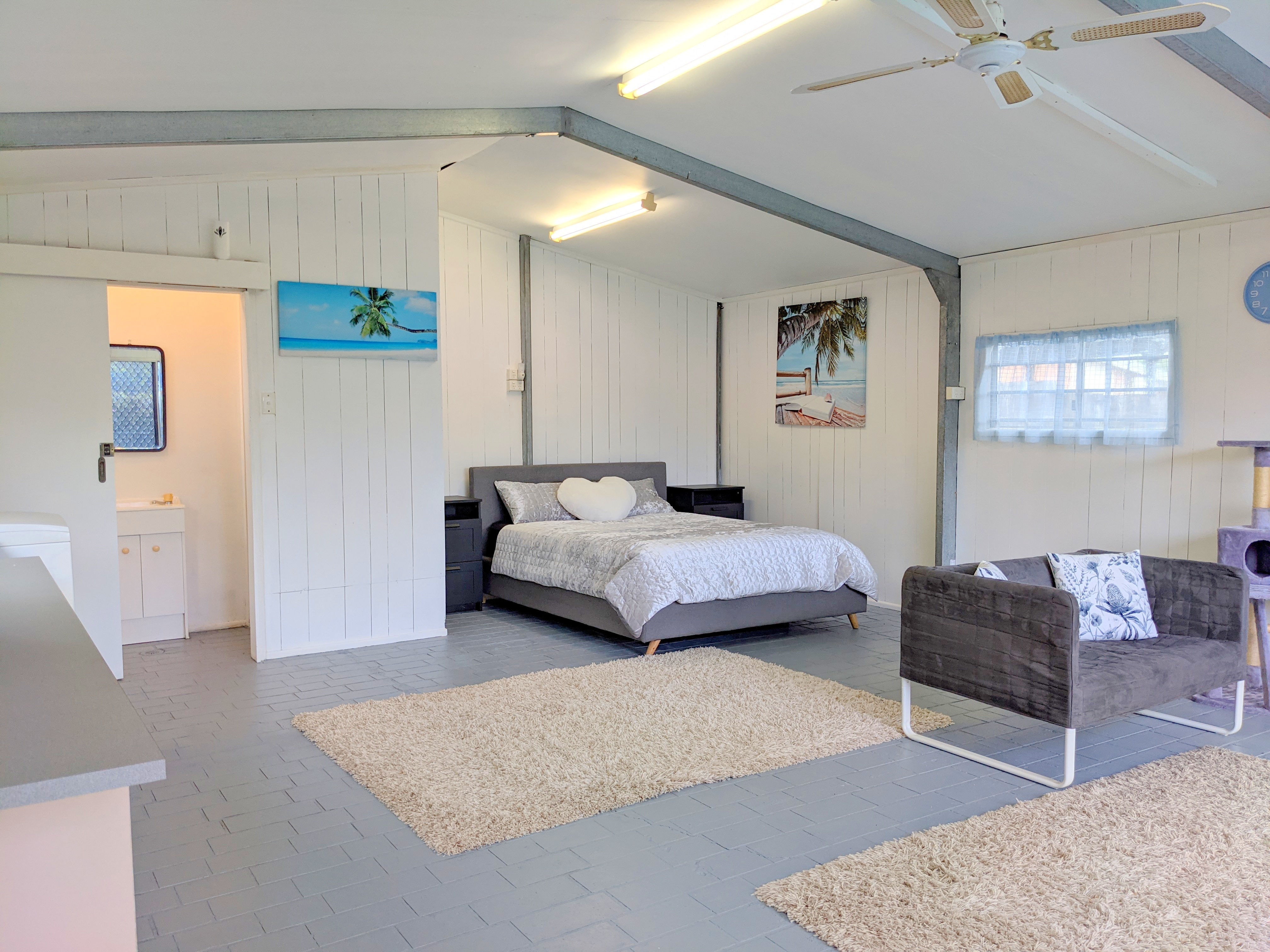 • Fully Lined & Insulated 6x5m Shed with a Shower, Toilet & Vanity perfect for teen retreat/extra living space or guest accommodation
