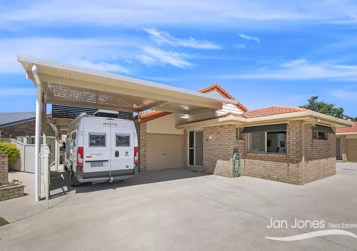 Situated in a quiet street this unique property is a great find. Sitting in the front of a small set of 3 units, 2 of which are owner occupied, this one has been beautifully renovated. The home has been immaculately maintained and is move in ready. The body corporate is a very reasonable $1,200 per year and the location is extremely convenient.  If you are looking for a quality property you would be proud to call home this, is it.  If you have a motor home or need room to park extra vehicles the space is here – such a unique find in a unit.