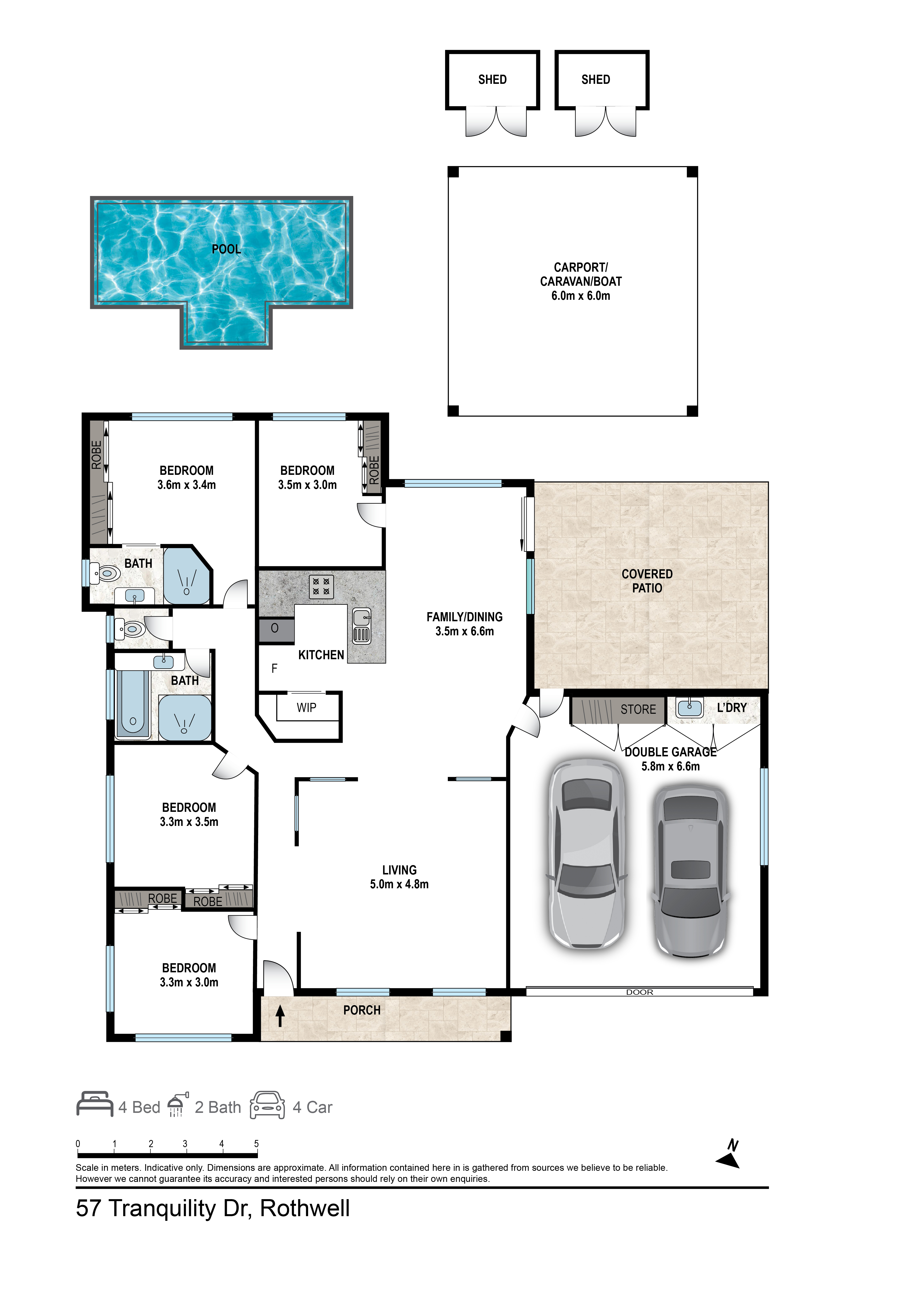 Step inside 57 Tranquility Drive Rothwell to discover open-plan living designed for family life. It includes air conditioning in the main living area and master bedroom, plus ceiling fans throughout for all year round comfort. The newly renovated kitchen is the heart of the home, featuring an electric cooktop and oven, a large pantry, and plenty of storage.